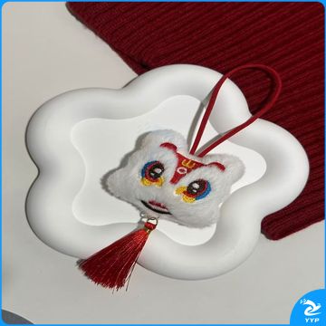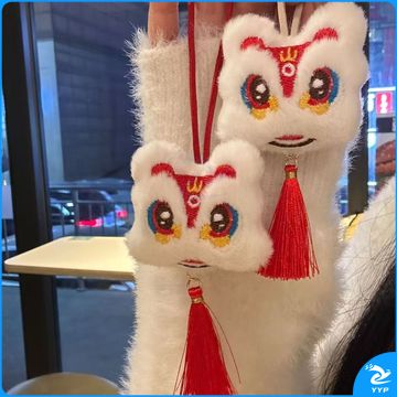 中国风醒狮挂件可爱毛绒新年新年喜庆好运挂饰米绳加红绳2个装