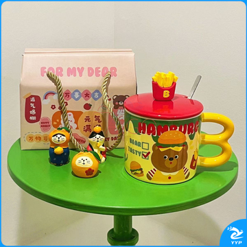法式薯条小熊马克杯带盖勺水杯牛奶杯男女生情侣杯陶瓷杯子大容量