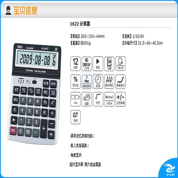 得力 1622 语音计算器12位大屏 (单位:台) 深蓝