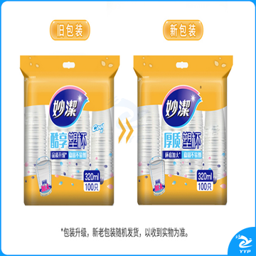 妙洁7021一次性塑料杯特大号100只*320ml不易变形