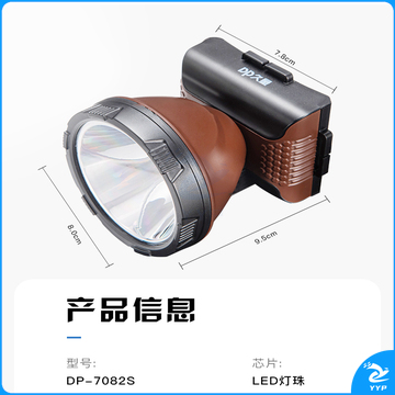 久量(DP)LED-7082S锂电池头灯 充电式户外照明钓鱼灯 强光远射头戴式矿灯