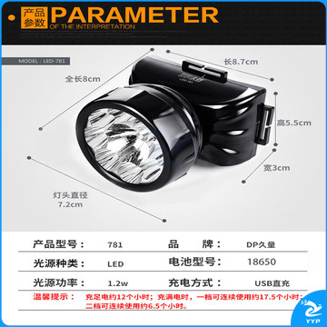 久量(DP)头灯超长续航夜钓灯 强光远射应急照明灯 头戴式矿灯手电筒LED-781