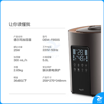 德尔玛(Deerma)加湿器 大容量上加水智能恒湿净化加湿 家用卧室办公室空气加湿 UV净菌等4重净化 F850S