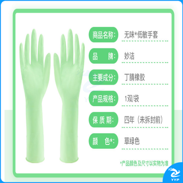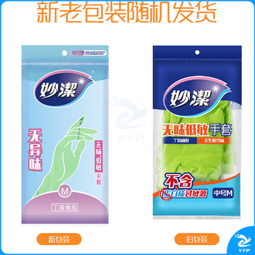 妙洁清洁橡胶手套 丁腈无味低敏厚皮实耐用防滑家务厨房洗碗洗衣 中号