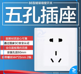 美的(Midea)开关插座面板二三极五孔插座86型墙壁插座电工暗装面板