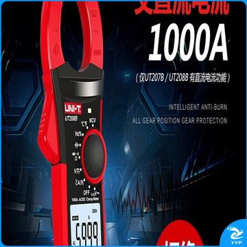 优利德(UNI-T)UT206B 真有效值数字钳形表 钳型表 钳表 交流1000A 数显式背光带测温