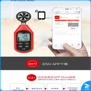 优利德(UNI-T)UT363BT 蓝牙迷你风速计 风速仪