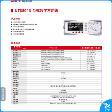 优利德(UNI-T)UT8804N 台式数字万用表高精度自动量程真有效值数显式多用表
