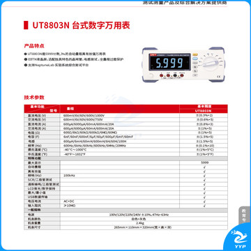 优利德(UNI-T)UT8803N 真有效值台式数字万用表高精度真有效值数显式多用表