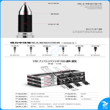 得力S20中性笔0.7mm子弹头(单位:支)红色