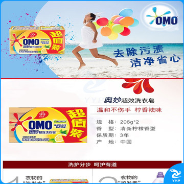 奥妙超效洗衣皂226g×2块超值206g温和不伤手天然芦荟/柠檬精粹香皂肥皂透明皂洗衣家庭装整箱批发 1组(226g×2块) 奥妙(芦荟和柠檬香味随机发货)