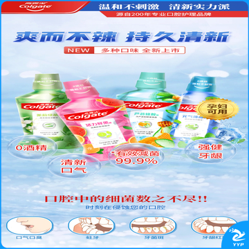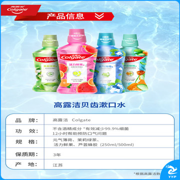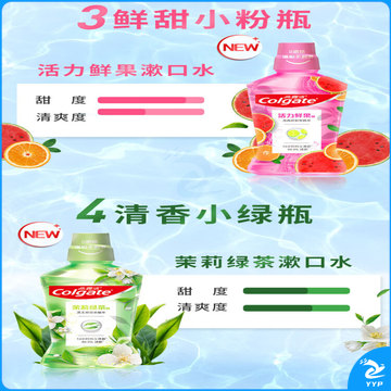 高露洁活力鲜果味漱口水 酒精清洁温和口感清新口气有助蛀 1瓶 250ml