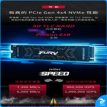 金士顿(Kingston) 4TB SSD固态硬盘 M.2接口(NVMe协议 PCIe 4.0×4) FURY系列