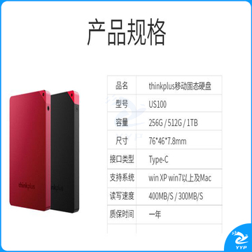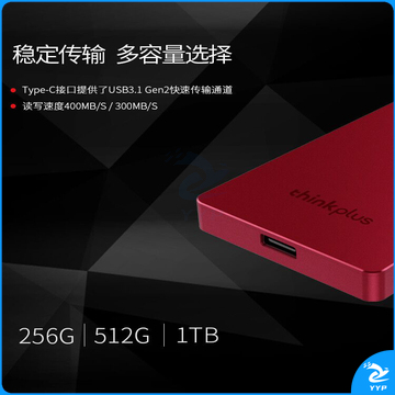 联想thinkplus移动固态硬盘 USB3.1高速SSD移动硬盘256G/512G/1T US100红色 1T