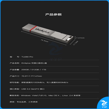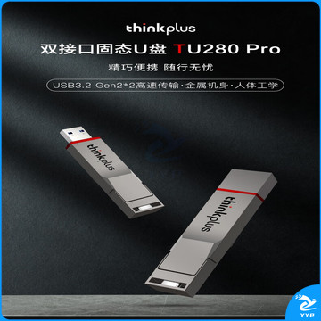 联想thinkplus双接口固态u盘高达1000MB/S usb/type-c手机高速大容量办公优盘 TU280 Pro【256G】
