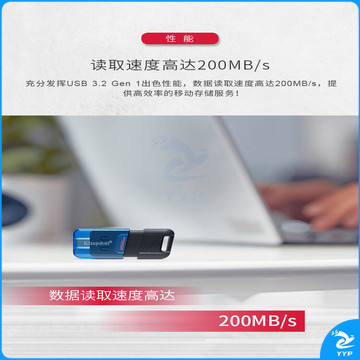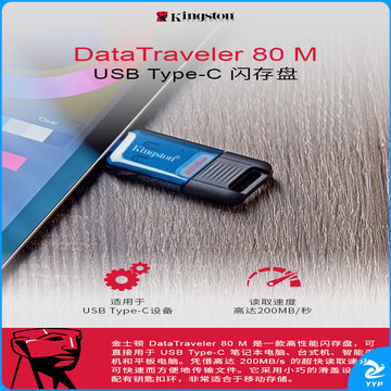 金士顿(Kingston)256GB USB3.2 Gen1 U盘 DT80M Type-C 手机U盘 读速200MB/s 滑盖设计