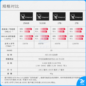 金士顿(Kingston) 512GB SATA3 SSD固态硬盘 KC600系列