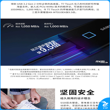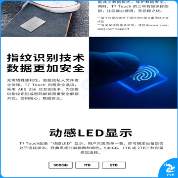 三星SAMSUNG Type-c USB3.1/2移动硬盘SSD固态 安全加密 小巧便携 T7 Touch 经典黑指纹识别 500G