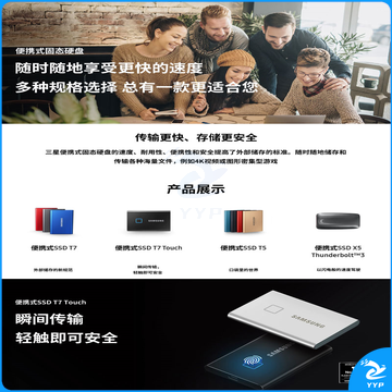 三星SAMSUNG Type-c USB3.1/2移动硬盘SSD固态 安全加密 小巧便携 T7 Touch 经典黑指纹识别 1TB