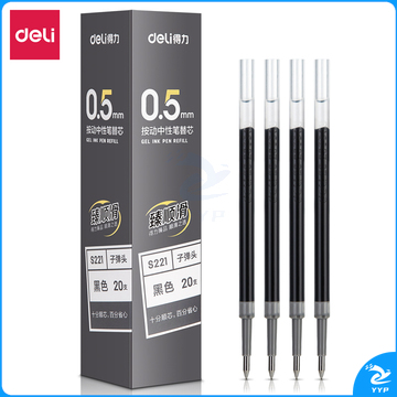 得力S221按动中性笔替芯0.5mm子弹头(黑)(支)
