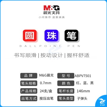晨光 ABPV7501 圆珠笔(24支/盒) 按支销售蓝黑红备注颜色