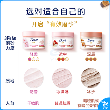 多芬(Dove)身体滋润磨砂膏乳霜298g 澄糖椰香 温和去角质鸡皮持久留香(新老包装随机发货)