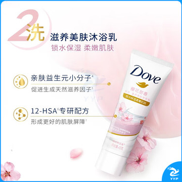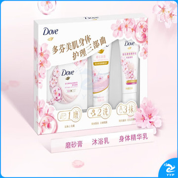 多芬(Dove)樱花甜香旅行套装含礼盒 樱花磨砂膏20G+沐浴乳45G+身体乳30ml