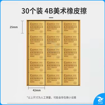 齐心 B2553 4B美术用橡皮擦 大 棕色 单块 30个/盒
