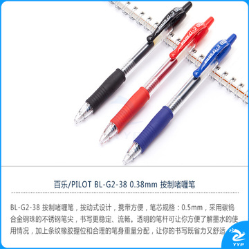 百乐(PILOT) BL-G2-38 按制啫喱笔 超细签字笔中性笔 黑色0.38mm(12支/盒)