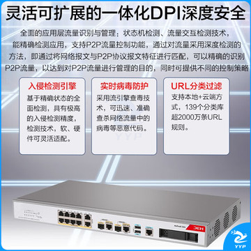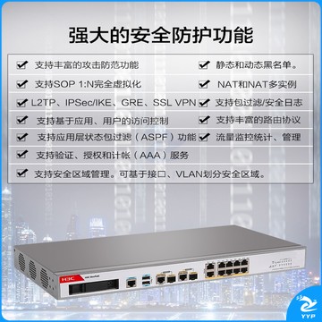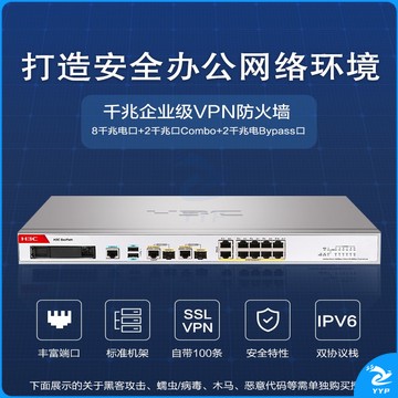 新华三(H3C)F100-S-G5 8电口+2光全千兆多业务企业级网络安全管理防火墙 带机500-600 免费100条SSLVPN