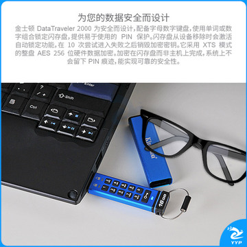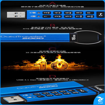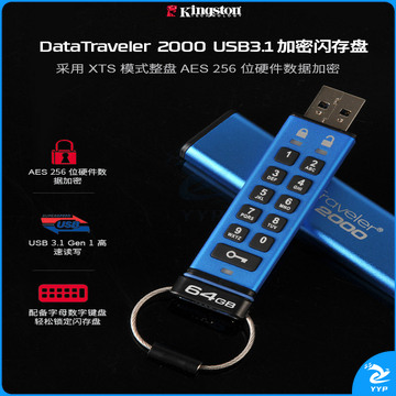 金士顿(Kingston)64GB USB3.1 U盘 DT2000 读速135MB/s 256位AES硬件数字加密