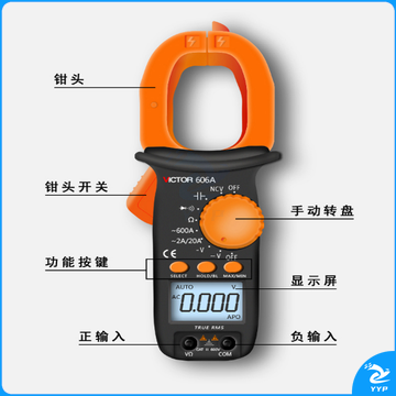 胜利仪器(VICTOR)钳形表 万用表 数字电流表 交流钳形万用表 钳型万能表 交直流600A VC606C+充电套装