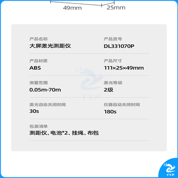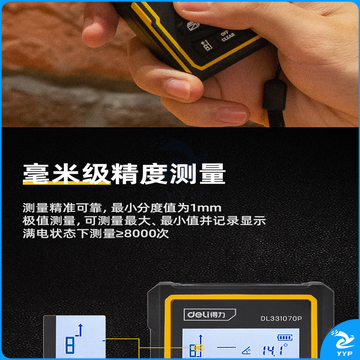 得力DL331070P 手持式大屏激光测距仪高精度电子尺红外量房仪电子水平泡70米