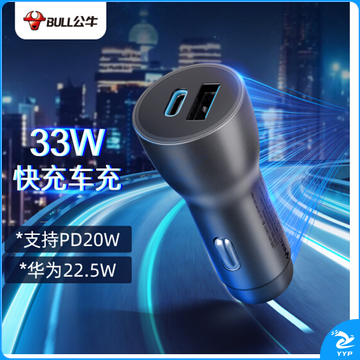 公牛(BULL)车载充电器33W快充车充 USB-C/A双口车充GNV-CUN331铝合金一拖二适用苹果PD20W/华为/小米等快充