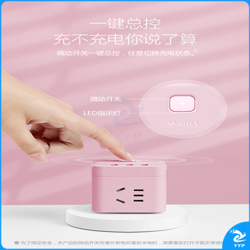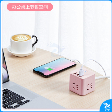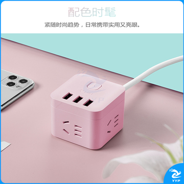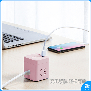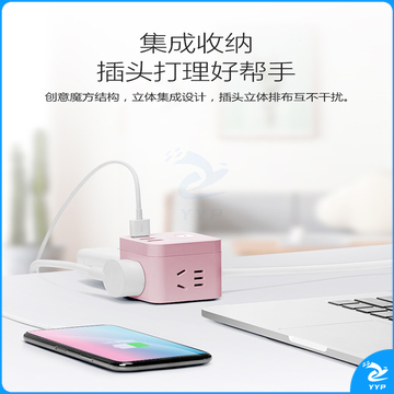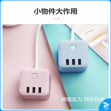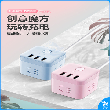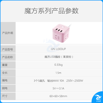 公牛(BULL) 智能USB插座/插线板/插排/排插/接线板/拖线板 茱萸粉魔方USB插座全长1.5米 GN-U303UP
