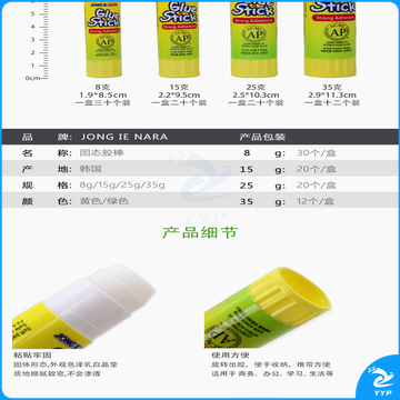 JONG IE NARA 纸世界15g 韩国进口JONG IE NARA 南韩固体胶 15g黄色办公胶棒(20支装)