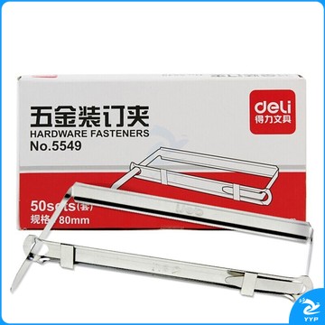得力(deli)5549五金装订夹80MM(金属色)(50套/盒) 1盒