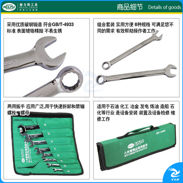 赫力斯HELISI镜面抛光梅花开口两用扳手两用扳手组合工具10pc(6-27mm)