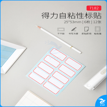 得力 72枚25×53mm自粘性标贴7182 (10本装)