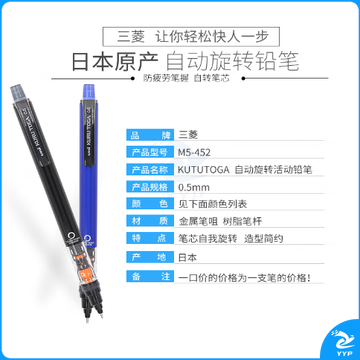 uni三菱日本UNIKURUTOGA自动铅笔 自动旋转活动铅笔写不断小学生绘图考试铅笔 基础红(M5-450) 单支价