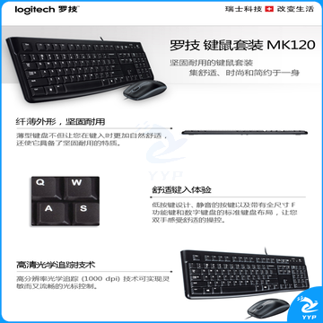 罗技 MK120 键鼠套装 键盘套装 (黑白两色可选)