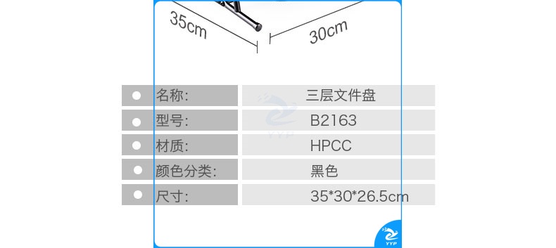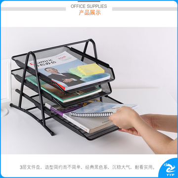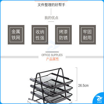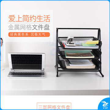 齐心 三层金属网格文件盘 文件框 文件收纳 黑色B2163