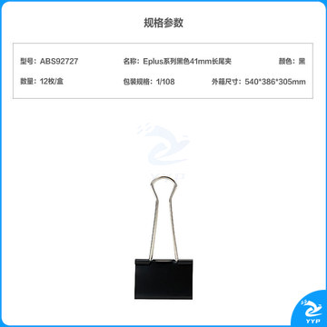 晨光(M&G) ABS92727 长尾夹 41mm 黑色 12枚/盒