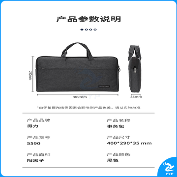 得力5590手提拉链袋电脑公文包400*290*35mm (灰)