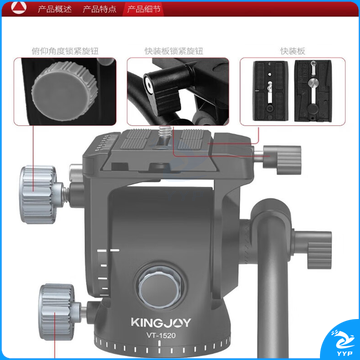 劲捷(KINGJOY)VT-1520 摄影摄像三脚架专业三维手柄液压阻尼云台 【液压阻尼云台】