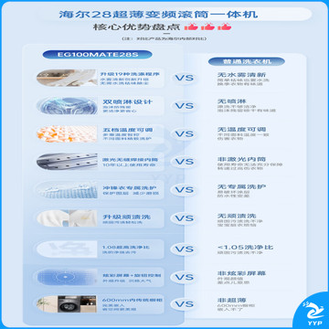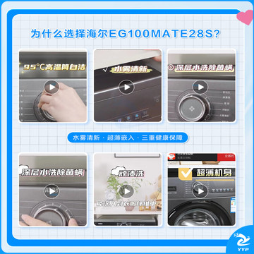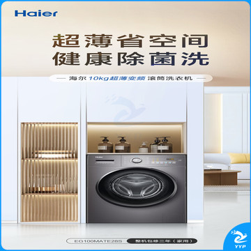 海尔(Haier)滚筒洗衣机全自动 超薄 10公斤大容量 水雾清新 双喷淋防残留EG100MATE28S【MATE2S升级款】