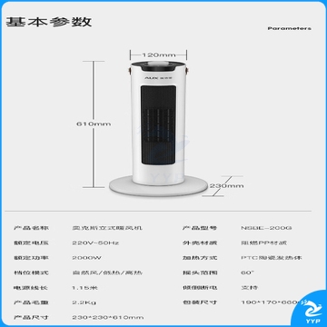 奥克斯(AUX)取暖器/电暖器/电暖气家用/取暖电器/电暖气暖风机电暖风热风机电热扇塔式暖风机NSBE-200G