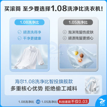 海尔(Haier)滚筒洗衣机全自动 智投单洗旗舰 10公斤大容量 母婴级除菌 超薄 1.08洗净比 EG100MATE55