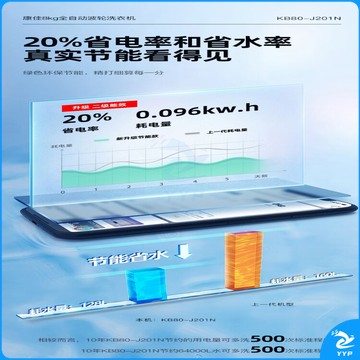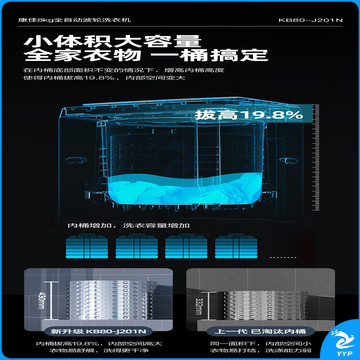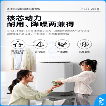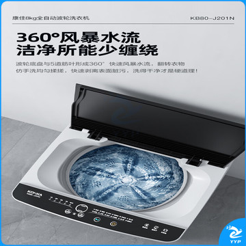 康佳 8KG大容量全自动波轮小型洗衣机 租房神器 超薄洗衣机 19分钟快洗 桶自洁风干 KB80-J201N