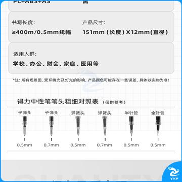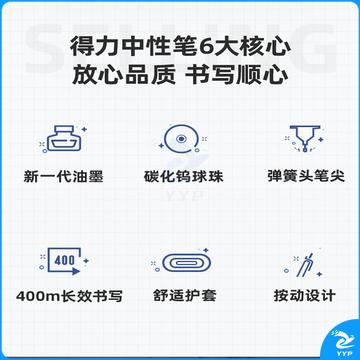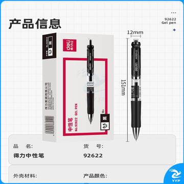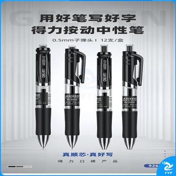 得力(deli)S01中性笔签字笔 0.5mm子弹头按动笔水笔办公用品 黑色 12支/盒33762替芯蓝色60支